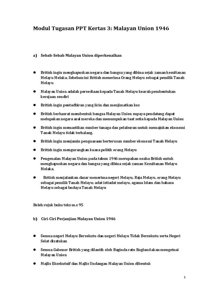 Doc 5 Bandingkan Bezakan Ciri Ciri Kerakyatan Malayan Union 1946 Dan Persekutuan Tanah Melayu 1948 Cik Anayong Academia Edu