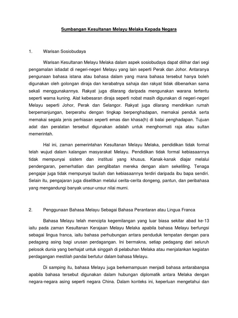 Sumbangan Kesultanan Melayu Melaka Kepada Negara