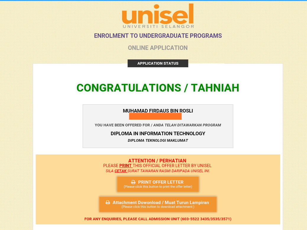 Result Spm 3 A Surat Tawaran Ke Unisel Diploma Teknologi Maklumat